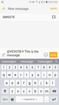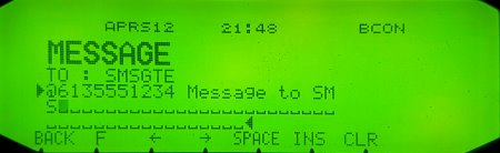 To send a message from an APRS station, simply address your message to SMSGTE with the following format: